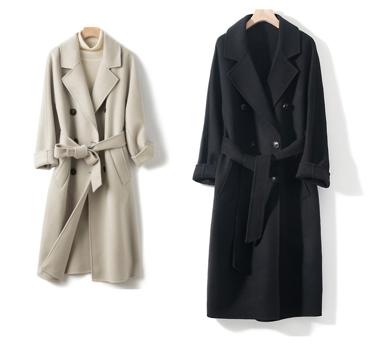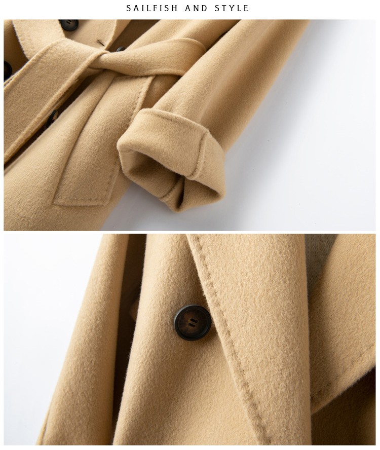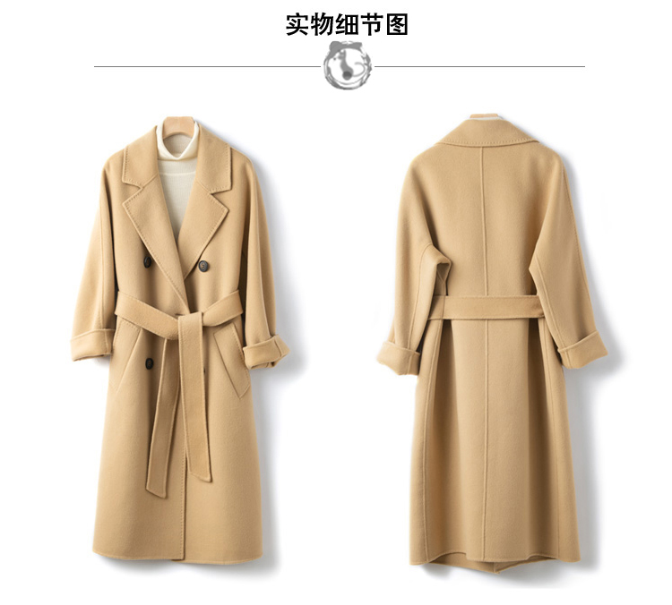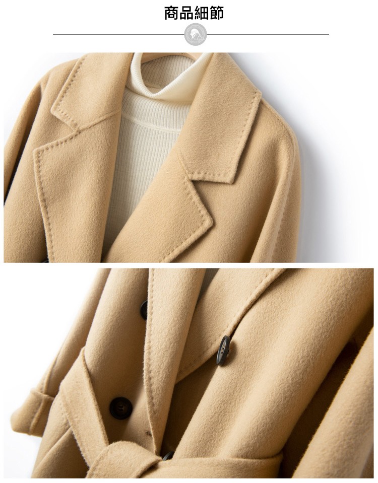 雙排扣系帶雙面絨羊駝大衣【輕薄柔軟】