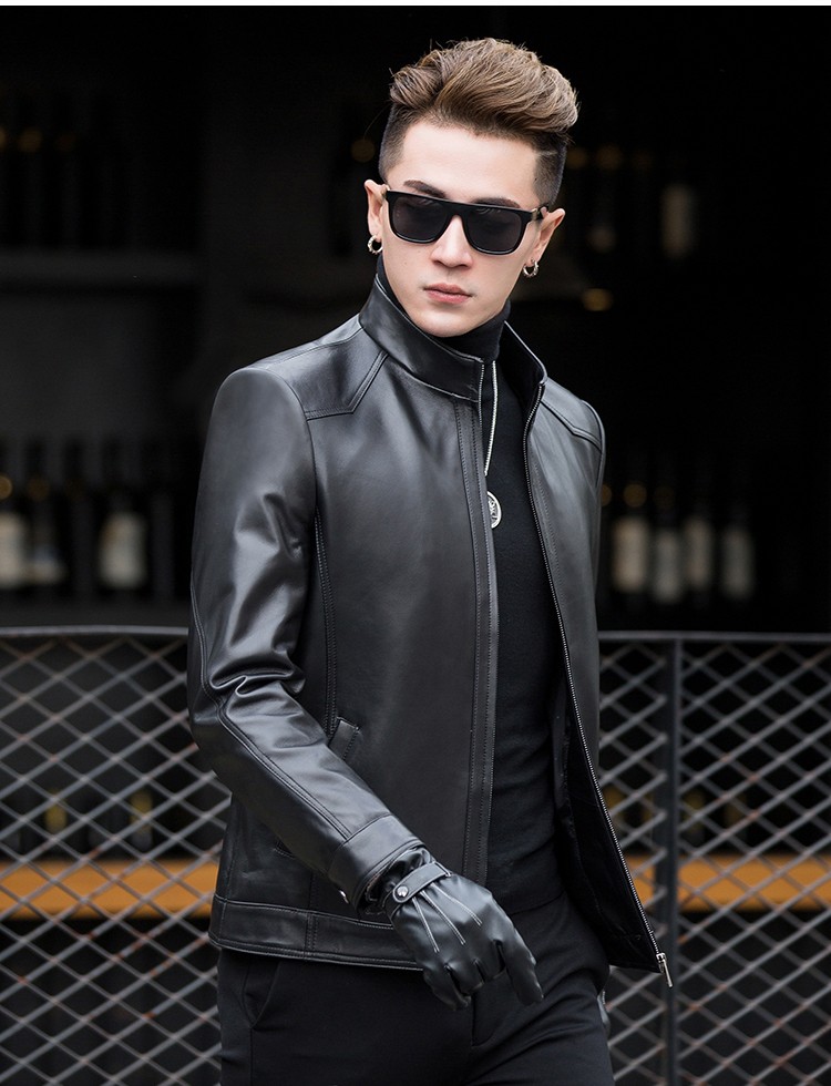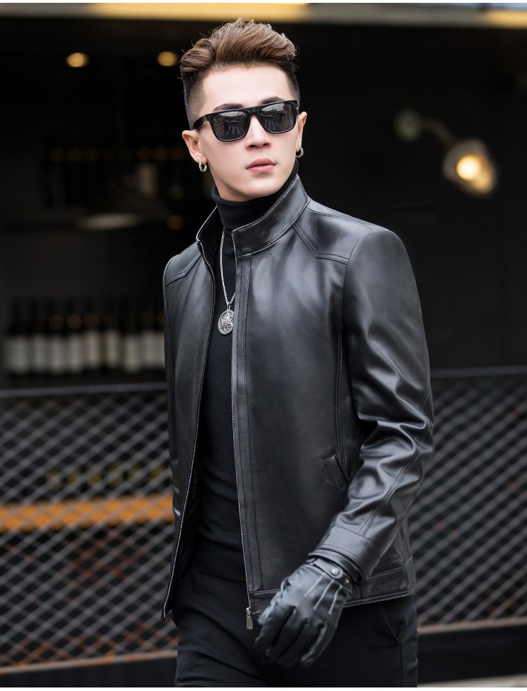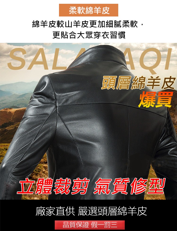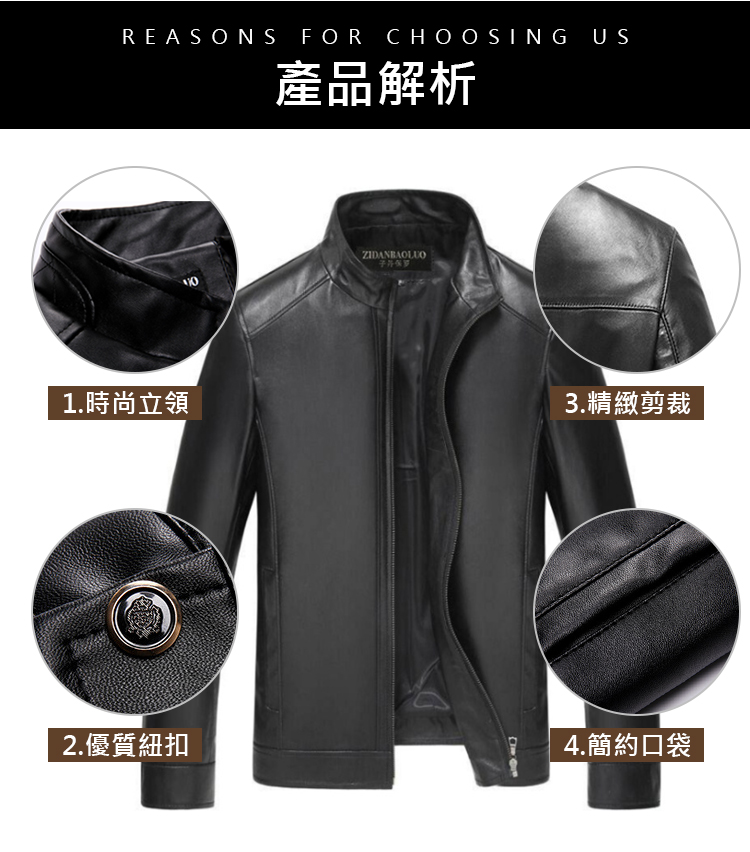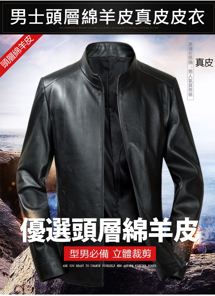 男士立領純羊皮皮衣